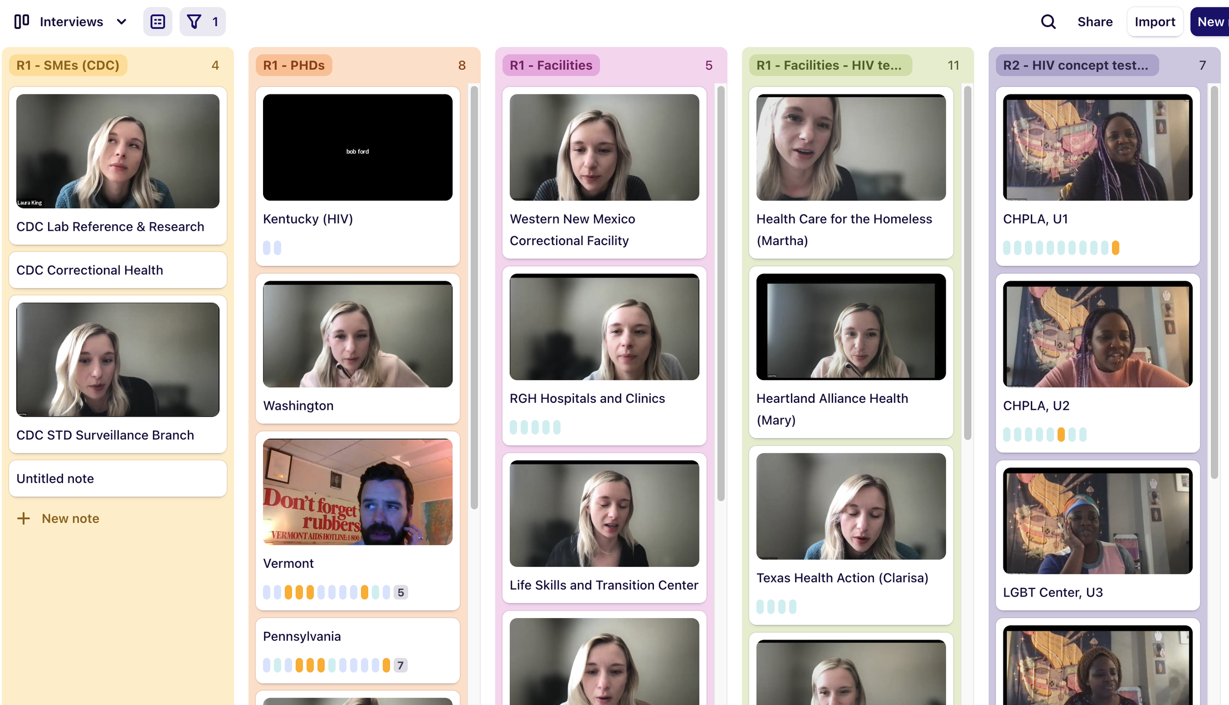 To ensure we could build a solution that addressed the needs of diverse testing settings, we conducted remote 1:1 interviews with 12 HIV testing providers across the country, focusing on non-clinical settings. We developed our interview guides based on insights gleaned from our in-person observations as well as hypotheses formed from our stakeholder interviews.